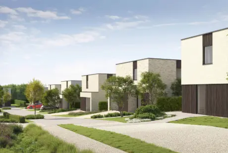 This residential project in Dilbeek offers a collection of nine single-family homes, each providing a spacious living environment suitable for families or those seeking ample space. The homes feature a livable surface ranging from 134 to 141 square meters, with three comfortable bedrooms and a modern, well-designed layout. Each property benefits from a generous private garden, perfect for outdoor activities or personal gardening endeavors. Located in a quiet side street of Bodegemstraat called Groentenerf, the development offers a peaceful and secure environment while maintaining excellent access to major transportation routes. The proximity to the Brussels Ring and the city center makes commuting straightforward, and the nearby Ninoofsesteenweg provides quick access to local amenities, shopping centers, and services. The immediate surroundings are characterized by a low-density, open development style, emphasizing privacy and tranquility. Each home is equipped with energy-efficient features such as a heat pump, solar panels, underfloor heating on the ground floor, and energy-efficient convectors upstairs. Parking is no concern, with each unit having a double driveway and additional parking spaces available in the street. Interested buyers can contact the project team via a free phone number or email for more information.