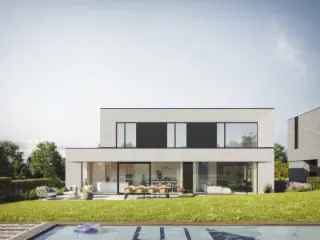 Elk van deze halfopen villa’s blinkt uit door haar sublieme architectuur. Een optimaal gebruik van ruimten en volumes maakt dat het lijnenspel als strak en toch speels wordt ervaren.