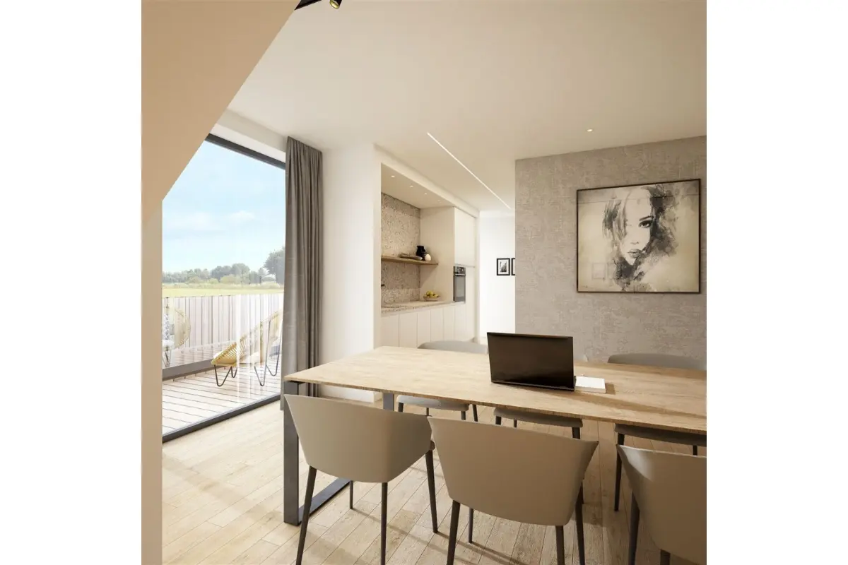 Project Dorpsstraat 64 Stekene is a well-situated new development in the heart of Stekene, located on Dorpsstraat with all shops and amenities within walking distance, making it an ideal choice for those seeking convenience and accessibility. The project comprises a commercial space on the ground floor and five luxuriously finished apartments, offering a selection of 1, 2, and 3-bedroom units. Each apartment is designed with a living room that provides direct access to a spacious terrace, ensuring residents can enjoy outdoor living. The interiors, including the kitchen and bathroom, can be customized to suit the buyer's preferences and are offered with generous budgets. A standout feature of this project is its commitment to energy efficiency, featuring solar panels, geothermal heat pumps, and underfloor heating. These elements contribute to a modern energy standard with an E-level of less than 20. Additionally, each apartment comes with an above-ground garage box for added convenience. This initiative not only meets current energy requirements but also offers cost-saving benefits through potential reductions in energy expenses over time. The apartments are available at competitive prices ranging from €315,000 to €515,000, catering to various buyer needs with living spaces from 73 m² to 163 m². Buyers intending to occupy the apartment themselves can take advantage of a reduced VAT rate of 6%, which could lead to savings of up to €50,000. To explore this unique opportunity further, interested parties are encouraged to contact Laurens at Tel 0471/36.49.78 or via email at Contact for additional information or to schedule a viewing.