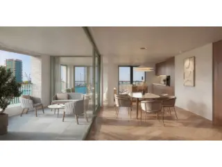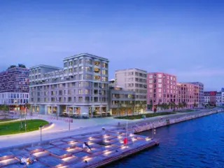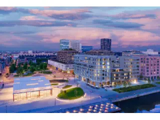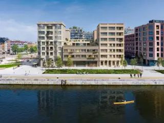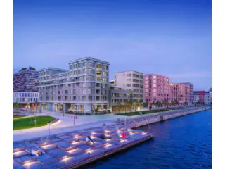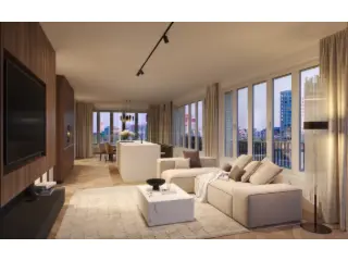 In the upper levels of the four corner towers are homes that stand out with a panoramic view over the unique surroundings. Each apartment has a private terrace where you overlook the green inner garden, the water or the fantastic Schengen Square.