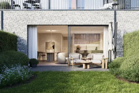 Schuttershof is a brand new residential project in the center of Mariaburg, in the green outskirts of Antwerp. The sun-drenched, spacious terraces give the apartments an exceptional and unique feeling of light and space. The apartments are superbly oriented to south/west and all overlook gardens. On top of the perfect orientation, the ground floor apartments also have gardens and terraces of up to 180m².