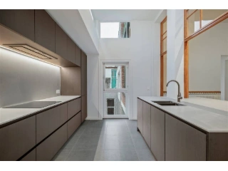 Woonerf De Confiserie is a unique residential project located at Lange Leemstraat 374 in Antwerp, in the vibrant and sought-after neighborhood. This development is a repurposing of the historic "Confiserie Roodthooft," a renowned candy factory famous for its "arabierkes" or mokatine candies. The project preserves the rich industrial heritage by restoring an iconic art-nouveau building, which now houses a collection of modern, energy-efficient apartments within a beautifully renovated historical setting. The complex offers a total of 38 units, with living spaces ranging from 61 to 286 square meters. There are options for one, two, and three-bedroom apartments, providing flexibility for different lifestyles and family sizes. The apartments have been finished with high-quality materials and are equipped with the latest energy-saving technologies, including a warmtepump (heat pump) and acoustic-insulated windows. Many units feature high ceilings, decorative mouldings, and large windows, which allow for plenty of natural light and add to the charm of the space. The project combines the historic charm of the art-nouveau façade with modern architectural elements around the internal courtyard, creating a distinctive blend of old and new. The fully restored exterior makes an impressive visual statement in the cityscape, while the interiors offer a comfortable and stylish living environment. Woonerf De Confiserie presents an attractive opportunity for those seeking a characterful, energy-efficient home in one of Antwerp's most desirable areas.