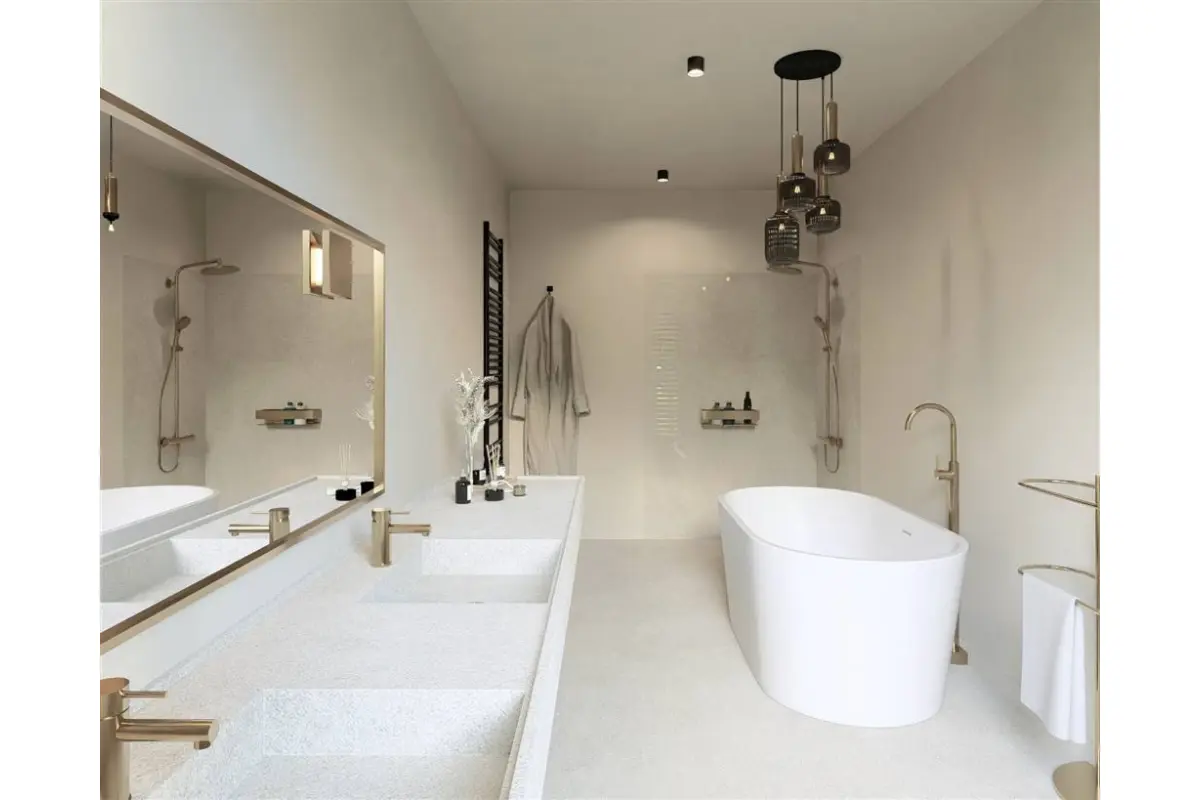 This new construction project located at Steenakkerstraat 105 in Diepenbeek offers a spacious and energy-efficient family home. Situated on a peaceful, centrally positioned lot of 406 square meters, the house boasts a generous gross living area of approximately 200 square meters. The layout includes a large living room with an open kitchen, a storage room, a bike storage area, and three sizable bedrooms. Additionally, there is a fully developed attic space that provides potential for further customization or additional living areas. The house features modern and durable materials, with a stylish façade in contemporary brickwork that blends well with the surrounding neighborhood. The interior finishes, including the floors, kitchens, and bathrooms, are customizable based on the buyer’s preferences, allowing for a personalized touch before move-in. Fully completed both inside and out (excluding painting), the property is ready for a seamless transition to its new owner. Designed with sustainability in mind, this home achieves an impressive energy performance with a zero-emission E-peil of 0. It incorporates high-quality insulation, a heat pump, and solar panels, making it an energy-neutral residence. The project is built under the VAT scheme with payment due upon completion, providing buyers with a straightforward purchase process. This unique opportunity presents a modern, environmentally friendly home in a friendly neighborhood environment.