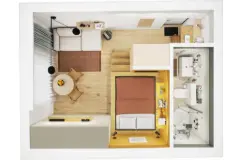 This apartment is located on Rue Cuerens in the heart of Brussels, offering a convenient and central position within the city. The property is fully furnished, making it suitable for those looking for a move-in ready living space. The apartment is situated on the ground floor, and its compact design includes a combined living and sleeping area, featuring a queen-size bed, a workspace with a table and chairs, and a closet for storage. The kitchenette is fully equipped with essential appliances such as a small refrigerator, freezer, stove, oven, and necessary cookware, allowing for comfortable self-catering. The modern bathroom includes a bathtub with an integrated shower, a sink, and a toilet. Shared laundry facilities with a washing machine are available for residents’ convenience. Located in a lively neighborhood, this property benefits from excellent connectivity and nearby amenities. A peaceful park is just a two-minute walk away, along with the charming Bloemenhofplein square, which hosts several restaurants and cafes. Public transportation options are plentiful, with tram, metro, and bus lines nearby providing easy access to major city destinations like Brussels South Station and the European Quarter. Shops and other services are within close walking distance, making this apartment practical for daily needs. Want to know more?