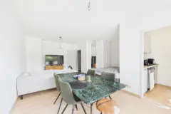 Discover this exceptional and luminous apartment available for rent in the vibrant neighborhood of Jette, offering a compelling combination of comfort, space, and practicality. Situated in a well-maintained small building constructed in 2007, this property presents an ideal living environment for those seeking a modern and functional home within easy reach of Brussels. The apartment boasts a generous living area of approximately 110 square meters, designed to maximize natural light and open living concepts. Its strategic layout includes two bedrooms, each fitted with built-in wardrobes, providing ample storage solutions for residents. The spacious living room seamlessly connects with a semi-open kitchen equipped with high-quality appliances such as a dishwasher, oven, microwave, vitroceramic cooktop, refrigerator, and freezer. The interior features elegant parquet flooring in the living-dining area and practical tiling in the kitchen, enhancing both style and ease of maintenance. A well-appointed bathroom with a bathtub, shower, double washbasins, and a separate toilet adds to the comfort of this exceptional apartment. The property benefits from several desirable features aimed at ensuring a comfortable lifestyle. A private terrace measuring approximately 7 square meters with an electric heat-reflective marquise provides an outdoor space ideal for relaxation or entertaining guests. The apartment is equipped with a gas-fired boiler for efficient heating, complemented by individual meters for gas, electricity, and water—offering tenants control over their consumption. The building includes a dedicated parking space under a carport, along with a cellar storage area, enhancing convenience for residents with vehicles. The apartment’s double-glazed windows contribute to energy efficiency and sound insulation, while the absence of air conditioning indicates a well-ventilated design suited to the local climate. The property’s excellent condition ensures easy move-in readiness, offering a modern and low-maintenance living solution. Located in Jette, this apartment provides not only a comfortable home but also access to the vibrant amenities and connectivity that this dynamic Brussels suburb offers. Jette is known for its lively community atmosphere, parks, shops, and excellent transport links to the city center and beyond. This property is ideal for professionals or small families seeking proximity to Brussels’ business districts while enjoying the tranquility of a well-established residential area. The rental price is set at €1,400 per month, with a security deposit of €3,100 and monthly maintenance costs of €150. Whether you are looking to settle into a contemporary home or invest in a conveniently located property, this apartment represents an excellent opportunity. For further details or to arrange a viewing, interested parties are encouraged to contact the listing agent promptly. Want to know more?