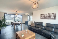 FURNISHED LUXURY PENTHOUSE with a large terrace. The penthouse is very quietly located in a residential neighborhood overlooking the green area (fields and woods) and in a quiet cul-de-sac. Stores, schools, nurseries, roads, highway, ... in short, all facilities are nearby. The nature reserve Torfbroek of Kampenhout, the Park of Relst are nearby and are ideal for a long walk, an outing with the children. The penthouse is located on the 3rd floor and consists of: entrance hall 7,40 m² with toilet and checkroom (tiled floor) - living room 34,40 m² (tiled floor) with an atmospheric fireplace (electric) - open kitchen 10,60 m² (tiled floor) with a breakfast corner, fridge/freezer, dishwasher, microwave, oven and induction cooker - storage room 4,90 m² with laundry room (tiled floor) - 2 bedrooms (tiled floor) 11,40 m² / 10,30 m² - bathroom 8,90 m² with shower cabin and 2 washbasins in furniture - 2 terraces: 28 m² (or W) / 20 m² (or Z). Available: 01/01/2026 EPC: 23038-G-DBA_2017009367/EP15513/A002/D01/SD005 (A) 38/kWh. Charges: €100 compulsory purchase for the garage + €130 for the common parts and elevator. Additional information: natural gas central heating - underfloor heating - 3 double glazed windows (aluminum) - water softener - blinds - electricity: double counter - videophone - 10 solar panels - 2 smoke detectors. Want to know more?