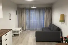 The apartment is located on the 5th floor of the building, built in 2008, and offers residents every comfort and convenience. It comprises: entrance hall leading to living room, fully-equipped kitchen, 1 bedroom, bathroom, small laundry room and basement cellar. Solid parquet flooring in living room and bedrooms. Individual boiler with room thermostat. Double-glazed windows. PEB D+ 31. Possibility of renting a basement parking space (120€) and cellar (30€). Access to the Kinetix sports center on preferential terms. For more information or to schedule a visit, please fill in the form on this website. 120€ (common charges, insurance, management fees, heating maintenance) Want to know more?