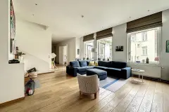 A stone's throw from the Saint-Gilles town hall, exceptional duplex penthouse apartment with a total surface area of ± 251 m² in an Art Nouveau building by architect Richard Pringiers. It consists of a large entrance hall with a bright living room (± 55 m²), a fully equipped open-plan kitchen with a dining area, 3 beautiful bedrooms (± 32 m², ± 14.50 m² and ± 12 m²) including the master suite with its private bathroom, an office or second living room upstairs, a shower room, a laundry area and two separate toilets. Beautiful east-facing terrace (± 20 m²) upstairs. Large cellar included and a parking space at an additional cost (€150/month). High ceilings, double glazing and parquet flooring. Company lease contract possible. Charges: €250/month (fixed fee for maintenance of common areas). PEB D-. Discover without delay!! Want to know more?