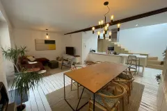 Close to the Basilique de Koekelberg - Beautiful 1-bedroom duplex apartment of +/- 116 m² with sauna located on the 1st floor of a 3-storey building composed as follows: a spacious and bright living room of +/- 44 m² followed by a dining room of +/- 25.2m², a space of +/- 20m² including a sauna, a bathroom of +/- 4m², a fully equipped kitchen of +/- 4m² (induction hobs, hood, fridge) and a beautiful bedroom of +/- 16.5m² on the mezzanine - Facilities and comforts: original parquet flooring, sauna, double glazing, entry phone, new kitchen - PEB : F - Charges : 200€/month (electricity, gas, water, Wifi/internet) - Available immediately Want to know more?