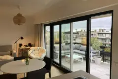 Ideally located, this superb furnished and equipped apartment of ± 114 m² charms with its high-end finishes and recent renovation carried out with great care. Combining modernity and comfort, it offers an elegant and functional living environment. Upon entry, a spacious hall welcomes you and leads to a large, bright living area serving as a living room and dining room of ± 30 m². The abundant natural light and spacious layout create a warm and welcoming atmosphere. The kitchen, fully equipped and state-of-the-art, features all modern appliances for optimal daily comfort. An independent room with an Italian shower completes the apartment's wellness space. For the night area, you benefit from: • A first bedroom of ± 18 m², bright and refined, offering a comfortable rest space with built-in wardrobe. • A second bedroom of ± 14 m², which can be used either as an additional bedroom or as an office, according to your needs. First occupancy after renovation, the apartment is furnished, offering a modern and pleasant living environment. Practical information: • PEB: D- • Available immediately • Rent: €2,750 per month, all charges included (water, electricity, heating, wifi, etc.) • No separate charges, everything is included in the price High-standard and quality apartment, guaranteed to be a favorite – a true jewel ready to welcome you! Want to know more?