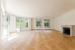 Facing the Mellaerts ponds and Parc de la Woluwe, superb first floor (4BDR+B/3BR) of +/- 317m2 (gross according to EPB) with private garden, in a luxury building - it comprises a vast entrance hall, guest toilet, washbasin, checkroom, a luminous living room of +/- 40m2 (decorative fireplace), a separate dining room of +/- 20m2, a large modern super-equipped kitchen (American fridge, large vitroceramic hob, two electric ovens, plate warmer, hood, microwave, dishwasher), a night hall leading to a master suite comprising a +/- 22m2 bedroom with fitted closets and dressing room, a shower room and a +/- 19m2 study - and three further bedrooms of +/- 17 and 22m2, two of which have fitted closets, 2 bathrooms - fitted laundry room - south and west-facing terraces and private garden all around - a cellar and a 2-car parking space in the basement complete the property. Miscellaneous: access to splendid park, concierge, elevator, double glazing (before 2021), armored door, alarm, videophone, gas central heating with condensation and cogeneration from 2020, smoke detectors, water softener, curtain rods, wall lights, blinds at rear - EPB: C (131kWh/(m2.an) et 33 de CO2) 20251024 ### - 650€ monthly provision for charges (janitor, common areas, heating, hot and cold water, maintenance by this garden) - surface areas are given for information only and are not contractual. Easy access to shops, restaurants, schools and transport (buses 36 & 41, streetcars 39, 44 and 8 ), to NATO and the airport, to the Ring. At the foot of Parc Parmentier and the Promenade Verte. Want to know more?
