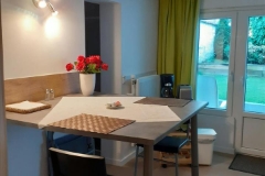 Located in the serene Rue du Korenbeek of Sint-Jans-Molenbeek, this spacious and recently renovated furnished studio apartment offers a comfortable living space ideal for mid-term rentals. Priced at 895 € per month, the rent includes all utilities such as gas, electricity, water, as well as a subscription to Wifi and TV, ensuring a hassle-free lifestyle. With a generous open-plan main room, the apartment is designed for convenience and modern living. The apartment features a well-equipped kitchen, a bathroom with an Italian shower, and essential amenities such as a washing machine. The living space is furnished with a small table, TV, wardrobe, bookshelf, and versatile bed setup, providing everything you need for immediate occupancy. There is also a petite terrace and a small garden area to enjoy some outdoor moments. Situated on the ground floor, the location is ideal for those who appreciate tranquility but still want to be close to shops, supermarkets, and public transport links. The property is best suited for an individual or could accommodate two persons with an additional charge of 55 €. Please note that pet ownership is not permitted, and short-term rentals from 3 months up to 1 year are welcome. Available from December 23, 2024, this apartment represents an excellent opportunity for those seeking a well-appointed living space in a prime location. Want to know more?