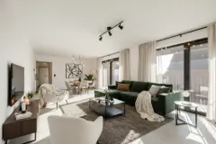 This recently built apartment is situated in the heart of Tielt within the Noë residential complex, offering a central location with convenient access to local amenities. The property is within walking distance of shops, the train station, the market, and the city park, making daily errands and leisure activities easily accessible. The apartment is part of a modern development completed in 2024, ensuring contemporary design, high-quality finishes, and energy-efficient features. The apartment spans approximately 97.33 square meters and features two spacious bedrooms, a bathroom, a guest toilet, and a practical laundry area with provisions for a washing machine. The living space combines a dining and sitting area connected to an open, fully equipped kitchen. A south-facing terrace of around 17.30 square meters extends the living space outdoors, providing a pleasant outdoor area for relaxation. The property is located on the second floor of a four-story building with lift access, making it accessible and convenient. Designed with sustainability in mind, this apartment complies with E-peil 10 standards and incorporates future-proof technology such as underfloor heating powered by a heat pump, solar-resistant glazing, and renewable energy solutions. These features contribute to lower energy costs, increased comfort, and a more sustainable lifestyle. The property also benefits from a secure and energy-efficient environment, making it an attractive option for those seeking a modern, environmentally conscious home in Tielt. Want to know more?