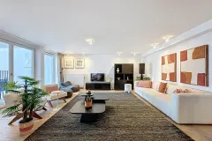 Brussels: Fabulous penthouse with a view of the arcades of Parc du Cinquantenaire, just steps away from Schuman roundabout, shops, schools, metro, train station, and city access. Located on the 10th floor of a building constructed in 1938, this penthouse offers a surface area of ± 235m². Completely renovated in 2017, contemporary architecture combines here with luxury and quality, providing all the comfort you could dream of. The apartment features polished concrete flooring throughout, numerous built-in closets, an entrance hall with a reinforced door, a cloakroom, and a guest toilet. Spacious reception areas with a fireplace, a corner terrace, a fully equipped kitchen (MIELE appliances) with a breakfast nook, a service entrance with an elevator and reinforced door. The night hall leads to two en-suite bedrooms, one with a dressing room and bathroom, and the other with a shower room. New wiring, compliant electricity, LED lighting, and dimmers throughout. On the ground floor, the property is complemented by a maid's room (16m²), two cellars in the basement, and possibility to buy a large garage 50.000 euros) Want to know more?