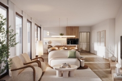 Aan de Leieboorden in Kortrijk verrijst binnenkort DamasK: twee stijlvolle, moderne gebouwen die het rijke textielverleden van de stad nieuw leven inblazen. Met subtiele architecturale knipogen naar het voormalige vlasverzendhuis – nu het populaire museum Texture – straalt DamasK tegelijk erfgoed en vernieuwing uit. Deze unieke woonplek ligt in het bruisende Overleie, een van de hipste wijken van Kortrijk. Je geniet er van het stadsleven én de rust van thuis. Ontspan op je ruime terras, lunch met vrienden in Kaffee Damast of laat je meevoeren door de vele evenementen in de buurt. DamasK telt 47 lichtrijke appartementen, elk met grote raampartijen en terrassen die je leefruimte uitbreiden met zicht op het levendige plein of een stille patio. De diversiteit in oppervlakte en indeling maakt het project aantrekkelijk voor starters, gezinnen en wie net iets exclusievers zoekt. Een ondergrondse parkeergarage en andere praktische extra’s verhogen het wooncomfort. DamasK biedt bovendien aantrekkelijke instapprijzen en is dus ook interessant voor investeerders die mikken op kwalitatieve opbrengsteigendommen vlak bij het hart van een bloeiende centrumstad. Dit type appartement omvat een inkomhal met apart toilet, ruime leefruimte met open keuken en aansluitende berging, badkamer, twee slaapkamers en terras. DamasK is dé plek waar geschiedenis en modern wonen samenkomen. Welkom thuis! Want to know more?