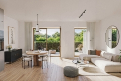 Laeken - This 99 m² two-bedroom appartment on the first floor offers a spacious and bright living environment. Its generous 34 m² living room, bathed in natural light, opens onto a balcony, perfect for enjoying a break in the open air. The two well-proportioned bedrooms (15 m² and 10 m²) guarantee comfort and privacy. The open-plan kitchen, ready to be fitted to your taste, blends harmoniously into the living space. The modern bathroom with high-quality finishes and a separate toilet add an extra touch of practicality. In addition, the project offers many surprises that will make your daily life even more enjoyable: underfloor heating for optimal thermal comfort, dual-flow ventilation for impeccable air quality, high-performance thermal and acoustic insulation, access to a landscaped interior garden, a true green oasis in the heart of Brussels, and a privileged location close to transport, shops, schools and green spaces. Pagode is the perfect opportunity to acquire a modern, sustainable and well-located home. Estimated EPB: A-. Cellar mandatory and possibly parkingspot. Sale subject to registration fees and VAT. TREVI: ### - ### Want to know more?