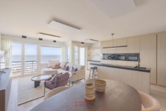 Located in the picturesque seaside town of Nieuwpoort, this remarkable apartment is situated on the sought-after Albert I laan, offering an ideal blend of coastal and urban living. Priced at 945,000 €, this property boasts an enviable position along the Zeedijk, granting breathtaking sea views and easy access to a variety of local amenities. Whether you enjoy charming strolls through the shopping street or leisurely walks on the beach towards Oostduinkerke and Koksijde, everything you need is within close reach. The apartment itself is a spacious 100 m² and has been meticulously transformed into a luminous and elegant living space. The expansive living area features an open kitchen, a cozy salon, and a dining area, all designed to maximize natural light and offer stunning panoramic views of the sea. The front terrace is perfect for dining al fresco with friends while enjoying the spectacular surroundings. Stretching to the rear of the building, the property also provides a sun-filled second outdoor space that offers a delightful retreat. Inside, you will find two generously sized bedrooms, one with an ensuite bathroom, and the other capable of accommodating up to four people. The central bathroom is tastefully finished and highly functional, complemented by two toilets (one separate) and a convenient laundry/storage room with washing machine connections. The apartment is sold fully furnished with modern décor, removing any moving stress. Additional features include a private cellar in the basement, a lift, and both gas and water connections. With an EPC rating of 130 kWh/m²/year, this apartment blends contemporary comfort with energy efficiency seamlessly. Want to know more?