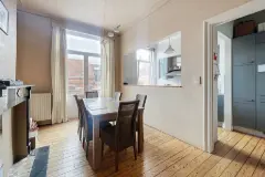 In a small, healthy condominium with 4 apartments, bright 58 m² (gross) apartment with 5 m² terrace, 1.25 m² storeroom and 2.5 m² cellar. Completely renovated in 2017, this charming, bright apartment is in excellent condition. Entrance hall with checkroom, spacious 29 m² living room with wooden floor and built-in bookcases, super-equipped kitchen (fridge, sink, ceramic hob, hood). Bedroom area (9.5 m²) with PVC double glazing, corridor with custom-made dressing room (6.5 m²), laundry room, bathroom (bath, washbasin unit, wall-hung WC, towel radiator, ventilation). Open-air tiled terrace, storeroom with condensing gas boiler. Cork and hemp insulation, double glazing (U = 1.0) with integrated mosquito screens, radiators with thermostatic valves, parquet flooring and meticulous finishing. Possibility of extending the terrace (subject to planning permission). Low charges, well-kept condominium. Quiet street, close to Place Colignon, Rue Royale Sainte-Marie and Avenue Louis Bertrand. Close to Brasserie de la Mule, Winok bar, Schaerbeek cultural center, Chez Achille, Maison des Arts and local weekend market. Lively neighborhood, shops and transport within easy reach. Visits via: ### Want to know more?