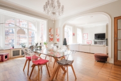 Saint-Gilles, near Place Stéphanie, magnificent Beaux-Arts style apartment of ± 200 m² gross with rear balcony on the 2nd floor. It is composed as follows: Entrance hall with cloakroom, bright living room of ± 61.5 m², fully equipped kitchen of ± 18 m² with furnished terrace and office of ± 6 m², day hall of ± 9 m², night hall with storage leading to 3 bedrooms of ± 21.5, 15.5 and 14.5 m², shower room (shower, double sink, bidet and toilet), separate toilet, shower room of ± 2.5 m². Also: Luxury building, architect De Roy, parquet flooring, compliant electricity, high ceilings, single glazing, collective gas boiler, water softener, bicycle storage. Garage at an additional cost. PEB: F. Discover it as soon as possible! Want to know more?