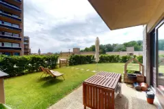 Expertissimmo presents this property in WOLUWE-SAINT-LAMBERT (Sainte-Famille) - Excellent location near Place Verheyleweghen, shops and public transport. Superb 2-bedroom apartment of +/- 107m² with south-facing terrace and garden, located on the ground floor of a well-maintained building. Entrance hall with security door, cloakroom/storage room and separate toilet - Spacious living room of +/- 35m² with access to the terrace and garden - Beautiful fully equipped open-plan kitchen (hob, extractor hood, oven, fridge, freezer and dishwasher) - Hallway with storage cupboards - Beautiful bathroom (bath, shower screen, double sinks, washing machine space) with second toilet - Two bedrooms of +/- 14m² and 9m² - Cellar and private parking space in the basement. Apartment in excellent condition. Electricity conform ! Available immediately. RU awaiting approval. PEB= D. PRICE: €395,000 + €15,000 for the parking space. --- VIRTUAL TOUR: ### --- Want to know more?