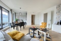 Composition Appartement A2.1.03 - 1er étage - 2ch/2sdb - 102 m² - Terrasse 11m² Nord/Est - Hall d'entrée avec espace vestiaire et toilettes invités - carrelage - Séjour de 36,3 m² donnant sur la terrasse - parquet semi-massif - Cuisine ouverte super-équipée - parquet semi-massif - Chambre 1 de 14,1 m² avec salle de douche (lavabo, douche) - parquet semi-massif - Chambre 2 de 12,6 m² avec salle de douche (lavabo, douche) - parquet semi-massif - Toilettes séparées dans le hall de nuit - Buanderie séparée - Cave attribuée et incluse dans le prix - Parking obligatoire en supplément. - Les informations collectées et communiquées par L&P dans le cadre de la présente description ne peuvent en aucun cas s’assimiler à une étude exhaustive de conformité légale ou technique du bien. La responsabilité de L&P se limitant à cet égard à une obligation de moyen, et non de résultat. - Toute offre reçue sera soumise à l’approbation du vendeur. Caractéristiques - Chaudière individuelle au gaz - Ventilation double flux individuelle - Châssis en alumium thermolaqué - Façades en briques de teinte claire, enduit sur isolant et pour le dernier étage, bardage métallique foncé - Garde-corps en structure métallique - Entrée de l'immeuble sécurisée avec vidéophonie Finitions : - Porte d'entrée sécurisée (3 points) - Parquet semi-massif vernis : hall, pièce de vie - Carrelage : salle d'eau, buanderie, cuisine - Murs et plafonds plafonnés/enduits sans mise en peinture - Cuisine super-équipée "KITCHEN COMPANY" (électroménager SIEMENS) - Mobilier et équipements de salle d'eau complet Want to know more?