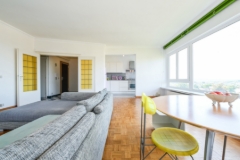 In the heart of the residential Vossegat-Roosendaal neighborhood, discover our pleasant sixth-floor apartment with stunning views over Uccle, offering two bedrooms. Located on the sixth floor, the property is composed as follows: security door, spacious entrance hall leading to all rooms of the apartment, bright living room with open kitchen, nice first bedroom with terrace access, second bedroom also with access to the terrace (currently open to the living room), bathroom with bathtub, separate toilet, built-in closets. Double glazing replaced in 2023, cellar included. A MUST-SEE! Want to know more?