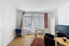 Visit this property with Josette: ### // Uccle, in the Churchill district bright and pleasant furnished studio with a bedroom corner, recently renovated, ±42 m², located on the 1st floor of a well-maintained building. It consists of an entrance hall with cloakroom and separate toilet, a ±24 m² living room facing West including a ±6 m² sleeping area, a brand-new fitted kitchen (induction hob, hood, fridge, freezer), a shower room (shower, sink, washing machine), and a cellar. Wooden parquet flooring, PVC double-glazed windows, lift up to standards. Monthly charges: 150€ (common areas, heating, hot and cold water). Close to Bois de la Cambre, Avenue Molière, and the Bascule shopping area. Well served by public transport (trams, buses). EPC: D. Available at deed ! Want to know more?