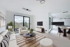Discover this flat with VICTOIRE, in the CARRE COGHEN project, located in the center of Uccle. Enjoy the many advantages of this project such as the exceptional location close to a wide variety of urban commodities, the high-quality of the construction, the splendid finishing and last but not least the beautiful inside lush garden. This beautiful apartment is located on the 2nd floor. The entrance hall with technical room, checkroom and toilet opens onto the living space, the super equipped open kitchen and the dining room. A nice well oriented terrace extends this one; a small night hall leads to a large bedroom with full bathroom en suite. A second bedroom also with bathroom en suite completes this apartment. Cellar included and Parking in extra ( 40 000 €) A project of GALIKA HUMAN ESTATE and the architect Pierre Blondel. Do not hesitate, contact us now! Sale under VAT 21 %. -> reduced to 6% under conditions (*until 2023, Unique property, less than 200 sqm, live there at least 5 years, N/A for investors). Want to know more?
