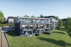 Pierre & Nature stellt Ihnen das dritte und letzte Gebäude dieses beeindruckenden Komplexes in dem Helene-Franken-Weg, am Park Loten in Eupen vor. Architektonische Kreativität und stylische Wohnkultur sind prägende Elemente bei den Berggärten, für die drei anerkannte Partnerunternehmen, Pierre & Nature, Bauunternehmen Convents und Architekturbüro Altiplan die Kräfte bündeln. Wenige Schritte vom Stadtzentrum und in direkter Nähe zum Park Loten, bietet das Projekt entlang der neuen Promenade eine große Vielfalt an elegante 2- und 3-Schalfzimmerwohnungen aus verschiedenen Größen und Budgets. Als Bewohner dieses Neubaus, werden Sie vor allem die ruhige und grüne Lage, die unverbaubare Sicht sowie die zahlreichen Fußgängerwege, welche zum Stadtzentrum führen, schätzen. Außerdem profitieren Sie von einer einzigartigen architektonischen Identität, die nachhaltige und umweltbewusste Materialien zum Einsatz bringt. Kombiniert mit den zahlreichen Außenbereichen und Terrassen entsteht ein ideales und harmonisches Lebensumfeld. Jede Wohnung verfügt über optimale Helligkeit und idealen Lebenskomfort dank großer Fenster. Die Residenz wird über die aktuell besten Energiezertifikate verfügen, nämlich PEB-Klasse „A“ und „Q-ZEN“. Zu den technischen Ausstattungen gehören außerdem: gemeinschaftliche Wärmepumpen, Photovoltaikanlage, verstärkte Wärme- und Schallisolierung, mechanische Be- und Entlüftung mit Wärmerückgewinnung, Regenwasserzisterne für die WC-Nutzung, verbesserte Luftdichtheit, LED-Beleuchtung in den Gemeinschaftsbereichen usw. Ein gesicherter und leicht zugänglicher Fahrradstellplatz steht den Bewohnern der Residenz zur Verfügung. Kellerräume und Innenparklätze können zusätzlich erworben werden. Der jetzige Projektfortschritt ermöglicht die Anpassung der Raumaufteilung an sämtliche individuelle Vorlieben. Helene-Franken-Weg 2, 4700 Eupen, Belgien Die Wohnung 1.2 verfügt über einer Fläche von 90 m², einer Terrasse von 52 m² und einen privaten Garten von 91 m². Die Einheit setzt sich aus einem Eingangsbereich, einem hellen Wohnraum (Küche, Esszimmer, Wohnzimmer) mit Zugang zur südöstlich ausgerichteten Terrasse, zwei Schlafzimmern, einem Badezimmer, ein separates WC sowie einem Technik-/Abstellraum zusammen. Kontaktieren Sie uns unter ### oder per E-Mail: ### Alle weiteren verfügbaren Wohnungen finden Sie auf der Webseite des Projektes: ### Want to know more?