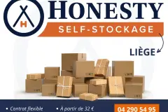 HONESTY SELFSTOCKAGE LIEGE offers 125 storage units and garages starting at €32/month (including VAT), ideally located in the heart of Liège, a stone's throw from Médiacité. Practical, secure and easy to access, our units are available 7 days a week without appointment! Several sizes are available, from 1.5 to 22 m². The fully automated building is equipped with a video surveillance system, fire and intrusion alarms, external barriers and internal shutters to ensure maximum security. For your convenience, parking is available on site. Our contracts are flexible with 15 days' notice and a 1-month renewable contract to suit all your needs: temporary storage, archives, long-term storage, personal or professional use! Get 1 month free when you sign up for a minimum 6-month contract! For more information, to receive plans or prices: ### – ### Want to know more?