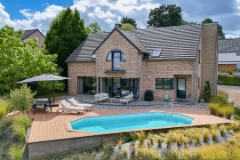 Nestled on the heights of the charming village of Dave, in the absolute calm of a dead-end street bordered by the forest, this contemporary villa captivates from the very first glance. Here, every detail exudes serenity and harmony, with unobstructed views that invite you to slow down and enjoy nature. The interior combines modern comfort with luminous spaces. Three bedrooms have already been fitted out, and three more can easily be added, depending on your wishes and life plans. A side access to the house opens up the possibility of installing a separate room, ideal for a professional, office or creative space. Built to offer optimal quality of life, the villa boasts an EPB B rating thanks to its 23 photovoltaic panels, underfloor heating throughout the living area, dual-flow CMV and micro wastewater treatment plant. All of which ensure comfort, energy efficiency and peace of mind on a daily basis. Outside, the atmosphere is resolutely friendly and elegant. The heated swimming pool, installed in 2022, becomes the heart of the summer season. Its green setting is enhanced by a 30 m² pool house, designed as a real living space, with a fully equipped kitchen and pizza oven, for unique moments with friends or family. This property is much more than a house, it's an art of living where modernity, comfort and nature come together to create an exceptional setting. Want to know more?