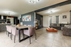Cette maison est vendue clé sur porte. La maison (3 façades) est composée au rez-de-chaussée d’un hall d’entrée, un vaste séjour de 36m², une cuisine (totalement équipée) ouverte sur le séjour, une buanderie et un wc séparé. A l’étage : un hall de nuit, une chambre parentale avec dressing (meubles compris) et salle de douche, deux chambres, une salle de bains (totalement équipés avec marchandises de qualité) et un wc séparé. Commodités : châssis en aluminium triple vitrages, carrelage sur tout le rez-de-chaussée et l’étage, système de chauffage via une pompe à chaleur. Système de ventilation double flux. Panneaux photovoltaïques afin de produire assez d’énergie pour toute la maison. Citerne d’eau de pluie d’une contenance de 10.000L. Devanture en graviers avec bacs pour plantation afin de délimiter la parcelle. Terrasse sur l’arrière de la maison accessible via une baie vitrée. Pour plus d'infos et une visite éventuelle, veuillez contacter le ### Want to know more?