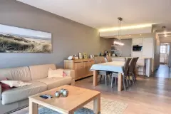 Prachtig nieuwbouw appartement gelegen nabij het centrum en het strand. Hoogwaardige afwerking: vloerverwarming, geothermische warmtepomp, blokdeuren, domotica, ... Het appartemen bestaat uit: inkomhal, toilet, berging, ingerichte keuken, living met eetkamer uitgevend op het zongericht terras, slaapkamer met badkamer, terras (achterzijde). Verdiep: twee slaapkamers met elk een groot terras, badkamer en afzonderlijk toilet. Mogelijkheid tot aankoop private kelder (6.000 euro) en /of een parkeerplaats (50.000 euro). Ref. Dunas 0501 En savoir plus ?
