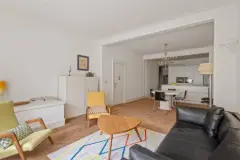 Situé au 78 Frankrijklei, en plein cœur d'Anvers, cet appartement offre un accès facile à toutes les commodités de la ville. À quelques pas de La Meir, de la gare centrale, de la Groenplaats et de la Grand-Place, il bénéficie d’un emplacement idéal pour profiter de la scène urbaine dynamique d’Anvers. Le quartier regorge de boutiques tendance, de restaurants variés, de cafés chaleureux, de parcs verdoyants et d’attractions culturelles, ce qui en fait un lieu de vie pratique et agréable. L’appartement, bâtit en 1938, a été rénové avec soin pour préserver certains éléments authentiques. Avec une superficie de 120 m², il se compose de deux chambres, dont une master de 27 m² avec walk-in dressing. La pièce principale est un espace lumineux avec des hauts plafonds et un parquet en chevrons d’origine. La cuisine ouverte est entièrement équipée et offre un grand espace de rangement, idéal pour préparer vos repas dans un environnement moderne. La salle de bain inclut une baignoire-douche et une double vasque, tandis qu’un WC séparé complète l’aménagement. Accessible via un ascenseur, l’appartement comprend également une cave privée pour le rangement. Le chauffage au mazout et la certification énergétique indiquent une gestion efficace. La propriété est située dans un secteur résidentiel avec une orientation nord-ouest et ne présente pas de risques liés aux inondations. Disponible immédiatement, cette résidence convient à ceux qui recherchent un logement en centre-ville avec du cachet tout en étant proche des principaux attraits d’Anvers. En savoir plus ?