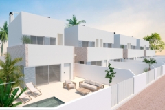 Nieuwbouw herenhuis met drie slaapkamers, dakterras en privézwembad, gelegen op een paar meter van het strand in Torre de la Horadada. Op loopafstand van het prachtige strand van Las Higuericas, in Torre de la Horadada, kunnen we nu dit fantastische en zeer interessante project presenteren dat bestaat uit bungalowappartementen, herenhuizen en vrijstaande villa's, allemaal gebouwd volgens een hoge standaard en zeer goede kwaliteiten. De herenhuizen hebben 93 bebouwde vierkante meter verdeeld over twee verdiepingen plus het zonnige dakterras met een prachtig uitzicht. Op de begane grond is er een ruime en goed ontworpen woonkamer met open keuken, een tweepersoonsslaapkamer met inbouwkast en een badkamer. Boven zijn er nog twee tweepersoonsslaapkamers met inbouwkasten en een tweede badkamer. Vanuit een van de slaapkamers en de hal bereik je een gezellig balkon met ruimte voor een tafel en stoelen. Verderop vanaf het balkon bereik je het zonnige dakterras waar je volop ruimte hebt voor ligstoelen, terrasmeubilair of een jacuzzi. De huizen worden geleverd met vooraf geïnstalleerde airco, vloerverwarming in de woonkamer, keuken en badkamer, doucheschermen in de badkamer, LED-verlichtingspakket, witgoed, aerothermisch warmwatersysteem en een privézwembad. In de omgeving zijn er verschillende cafés, winkels en sportfaciliteiten. Binnen een kort autoritje bereik je de stad Pilar de la Horadada, verschillende golfbanen of het grootste winkelcentrum in de omgeving, La Zenia Boulevard. De fantastische stranden van Torre de la Horadada liggen op een paar minuten lopen van het project. En savoir plus ?
