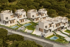 VILLAS JUMELÉES NEUVES À POLOP Nouvelle construction de villas jumelées avec plusieurs terrasses et solarium, entièrement clôturées, avec parking pour véhicules et piscine privée à Polop. Propriétés modernes avec 3 chambres spacieuses avec armoires encastrées (la principale au rez-de-chaussée, avec salle de bain et dressing en suite), 2 salles de bain spacieuses, grand salon-salle à manger avec cuisine ouverte, terrasses spacieuses. Cuisine équipée d'éléments bas et de plans de travail en pierre, avec plaque vitrocéramique, four, hotte aspirante, réfrigérateur, lave-linge, lave-vaisselle et chauffage aérothermique. Premières qualités : menuiserie intérieure en bois et stratifiés laqués blancs, menuiserie extérieure en pvc gris anthracite avec double vitrage et rupture de pont thermique, et stores automatiques à lamelles aluminium, sols céramiques de 1ère qualité antidérapants, murs lisses, porte blindée avec 5 points d'ancrage, grandes armoires encastrées. La ville de Polop offre une gamme étonnante d'options pour les amateurs de grands espaces entourés de nature et d'une paix inégalée. La municipalité jouit d'un climat méditerranéen avec des températures plus fraîches et un air plus pur. Elle est située à moins de 10 kilomètres de Benidorm, d'Altea et de leurs plages. Elle s'étend des rivières Guadalest et Algar jusqu'à la ville de Villajoyosa, en passant par les plages d'Albir et de Benidorm ; à l'intérieur des terres, elle est bordée par Callosa et Guadalest. En savoir plus ?