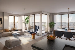 UCCLE - Dans un quartier résidentiel calme et verdoyant, à proximité de nombreuses facilités (trams, bus, gare, commerces, écoles, parcs et infrastructures sportives), magnifique APPARTEMENT NEUF (3ch+bur/1sdb/1sdd) de 146 m² avec TERRASSE dans un petit immeuble contemporain de 4 unités. Situé au 2ème étage, il se compose d'un hall d'entrée avec espace vestiaire et WC invités. Un séjour lumineux de 47 m² avec cuisine ouverte super-équipée, un bureau de 4,8 m² et une terrasse de 5,9 m² orientée sud-ouest. Hall avec espace de rangement donnant accès à la chambre principale de 15,6 m² avec sa salle de douche attenante (douche, double lavabo) et un WC séparé. Second hall de nuit avec WC séparé et buanderie, ainsi que deux autres chambres (11,3 m² et 11,1 m²) et une salle de bains (baignoire, double lavabo). Situé en retrait de la voirie tout en restant parfaitement connecté à la vie urbaine, cet appartement offre un cadre de vie à la fois paisible et accessible. Conçu avec soin, il allie confort, luminosité et fonctionnalité, avec une attention particulière portée à la durabilité et aux performances énergétiques (géothermie, panneaux solaires, double flux). PEB A. Cave incluse. Emplacement de parking en supplément. Local vélos. Vente du terrain sous le régime des droits d'enregistrement (12,5%) et de la construction sous le régime TVA (21%). Possibilité de TVA REDUITE à 6% SUR LA QUOTE-PART "CONSTRUCTIONS" sous conditions! A découvrir chez L&P! En savoir plus ?