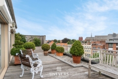 Interesse? Meer informatie op www.SWEVERS.be. - Het penthouse aan de Casinostraat 7 in Sint-Truiden ligt op de vierde verdieping en biedt 137 m² woonruimte, aangevuld met twee ruime terrassen van elk 60 m². De ligging is centraal, op wandelafstand van het centrum, winkels, restaurants, scholen en openbaar vervoer. De woning is op te frissen, waardoor er ruimte is om het geheel naar eigen smaak te moderniseren. Binnen valt de ruime woonkamer van 45 m² op, die dankzij grote raampartijen baadt in natuurlijk licht en directe toegang geeft tot één van de terrassen. De keuken, vernieuwd in 2011, is uitgerust met een inductiekookplaat en een ingebouwde Amerikaanse koelkast met diepvries, en biedt zicht op het terras. Er zijn twee slaapkamers, waarvan één in 2017 werd voorzien van op maat gemaakte inbouwkasten en een nieuwe vloer in de dressing. Het appartement beschikt over twee badkamers, waarvan één met douche en één met ligbad. Extra comfort wordt geboden door airconditioning (3 stuks), rolluiken en een lift in het gebouw. Buiten zijn de terrassen hoogwaardig afgewerkt: het achterterras kreeg in 2009 een aluminium pergola met screens, een vernieuwde vloer en een recent geschilderde gevel, terwijl ook het voorterras volledig werd opgeknapt. Dankzij de oriëntatie kan men de hele dag door van de zon genieten. Ondergronds zijn er twee aparte kelderbergingen van elk zes vierkante meter. Met het treinstation en een bushalte op slechts 170 meter afstand, en de snelwegen binnen een kwartier rijden, is de bereikbaarheid uitstekend. Dit penthouse combineert een royale woonruimte, veel licht en een uitzonderlijke ligging, en vormt een ideale basis om een persoonlijk en eigentijds interieur te creëren. Plan snel een bezichtiging en laat je betoveren door de unieke sfeer van deze woning! Wij helpen je maar al te graag verder tijdens een persoonlijke rondleiding. tel. ### Bron bewoonbare oppervlakte: EPC – verslag. En savoir plus ?