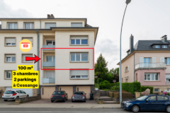 Together Immo vous présente ce bel appartement de 100 m² situé à Cessange, 3 chambres. Voir l'ensemble des photos & video sur notre site : ### POINTS FORTS - 100 m² - Double stationnement : garage fermé + place extérieure - Espaces extérieurs : terrasse privée à l'arrière + balcon à l'avant - Cave privée de 6 m² pour le rangement - Quartier recherché de Cessange - Calme et verdoyant. - À proximité des transports et des commodités - Accès rapide au centre-ville. Espace de vie - Salon lumineux de 30 m² avec parquet - cuisine équipée de 11 m². - 3 chambres (14 m², 12 m², 18 m²) avec placards intégrés. - Salle de bain + WC séparé - Terrasse privée de 4,5 m² + balcon de 2,5 m². PRATIQUE - Chauffage au gaz collectif avec compteurs individuels - Double vitrage + volets roulants manuels - Rangement optimisé dans tout l'appartement - Jardin communautaire avec parcelle privée - Charges : 400€/mois (chauffage inclus) EMPLACEMENT - Cessange - Quartier familial et verdoyant. - Transports en commun à proximité immédiate - Commodités accessibles à pied - Accès rapide au centre-ville. --- Contact : Martin Stoz - Together Immo ### ### En savoir plus ?