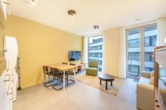 Experience upscale city living in the heart of Antwerp with this exceptional private two-room apartment. Spanning 57 sqm, this fully furnished residence offers comfort, convenience, and style, making it the perfect home for professionals, students, or short-term visitors. Step inside to find a bright, spacious living area complete with a large sofa, a four-person dining table, a modern TV, and neat décor that creates a welcoming ambiance. The living room opens onto a cozy terrace, ideal for relaxing outdoors or enjoying a cup of coffee. The fully equipped kitchen features ceramic cooking plates, an oven, hood, dishwasher, microwave, kettle, and all necessary dishes and utensils, making meal preparation hassle-free. The bedroom boasts a generous 160x200 bed, ample storage, bedside tables, and high-speed internet for your convenience. Adjacent to the bedroom is a private bathroom with a shower and toilet, designed for comfort and functionality. Ready to move in from day one, this apartment includes all essentials such as premium bedding, kitchenware, and household appliances. Utilities and services like water, internet, electricity, gas, and building maintenance are included within reasonable consumption, ensuring a hassle-free stay. Located just a short walk from supermarkets, restaurants, bars, a gym, and a cinema, the residence offers vibrant urban living. Transportation is effortless with Antwerpen Opera station just 3 minutes away, providing easy access to metro and tram lines. The building also offers bicycle parking, a social lounge, and a gym for your leisure and convenience. Discover the perfect blend of comfort and city life in this beautiful Antwerp apartment. En savoir plus ?