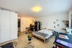 Studio neuf +-40m² composé de: - Living +- 20m² en parquet avec accès petit jardin - Cuisine équipé - Buanderie avec boiler - Salle de douche avec wc - Charges de 100€/ mois pour les communs et chauffage - Porte blindé, vidéophone, badge sécurité, double vitrage,.. - Parking au -2 ( 100€) + cave En savoir plus ?