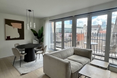 Quartier Dansaert / Sainte-Catherine : À deux pas d’Antoine Dansaert et de la place Sainte-Catherine, découvrez ce lumineux appartement avec ascenseur. Il se compose d’un hall d’entrée, d’un vaste séjour avec accès à une grande terrasse, d’une salle à manger et d’une cuisine ouverte entièrement équipée. L’espace nuit offre deux chambres, chacune avec sa propre salle de douche. Buanderie. Parking en supplément : 100 €/mois. PEB C Info & visites au ### - ### En savoir plus ?