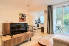 Situé à quelques minutes à pied de la place Flagey et à proximité immédiate des institutions européennes, ce superbe appartement d’une chambre en souplex (beau rez & -1) offre un cadre de vie raffiné, idéal pour allier confort et praticité. Récemment rénové et décoré avec goût, il propose des espaces lumineux et un ameublement complet haut de gamme. La terrasse aménagée avec lounge invite à des moments de détente exclusifs, tandis que le salon, équipé d’un canapé-lit et d’une smart TV, se prête aussi bien à la convivialité qu’au repos. L’appartement dispose également d’un bureau ergonomique avec Wi-Fi rapide, d’une cuisine moderne entièrement équipée (lave-vaisselle, four, micro-ondes, machine à café, etc.), d’un espace buanderie complet ainsi que d’équipements d’entraînement. La chambre bénéficie d’un projecteur intégré, pour une atmosphère unique. Situation : 7 minutes à pied de Flagey, 5 minutes de l’arrêt de bus ligne 71, accès rapide vers Louise et le centre-ville. - Charges (eau, gaz, électricité) non incluses. - Animaux de compagnie acceptés sur accord préalable. Un bien rare sur le marché, pensé pour des locataires en quête de confort moderne, de style et de sérénité en plein cœur de Bruxelles. Libre le 1er novembre. Pour plus d'informations et visites : Contacter : ### ### En savoir plus ?