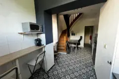 CHAMBRE ÉTUDIANT - RUE JEAN JAURES 127/012 UNIQUEMENT POUR ÉTUDIANTS OU JEUNES TRAVAILLEURS ! Chambre meublée en DUPLEX située dans une maison composée de 4 chambres uniquement pour étudiants. SITUATION : MONTIGNIES/S/SAMBRE - Proche de la HELHa, Condorcet -Bus à proximité - Proches de tous les commerces (Supermarché, piscine – Stade Yernaux, Cora Châtelineau...). COMMUNS : Hall d'entrée, avec un espace congélateur. Un local poubelle/vélo. PRIVE : AU 1er étage une chambre meublée se composant d'un bureau avec sa chaise, une étagère, une cuisine privée avec coin à manger et deux chaises hautes. AU 2e étage en mezzanine : un lit avec meuble de rangement, WC et salle-de-douche LOYER : 440,-€. CAUTION : 2 mois de loyer FORFAIT CHARGES : 110,-€ - WIFI/TV, électricité, gaz, eau. Disponible dès maintenant. En savoir plus ?