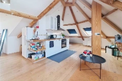 L'agence Immobilière Contigo vous propose un agréable studio mansardé de +/-66m², avec coin à dormir en mezzanine, buanderie et local vélo au rez-de-chaussée, en Région Flamande, à proximité du Ring de Bruxelles. Il est composé d'un vaste living avec cuisine à l'américaine super équipée (taque à induction, four, hotte, évier, frigo avec tiroir congélateur, lave vaisselle), ainsi qu'une salle de douche avec toilette et emplacement machine à laver. Petit jardin à partager avec 2 autres appartements. Bail de minimum 3 ans, libre le 15/01/2026. Les charges comprennent l'eau froide, le chauffage et l'électricité des communs. Volets sur tous les vélux A voir!! En savoir plus ?