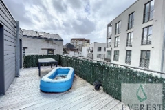 Découvrez cet appartement 2 chambres de plus de 100m2 complètement rénové en 2025. Le hall d'entrée vous mène dans le séjour de plus de 50m2 ave la cuisine ouverte et son ilot central. Des espaces de rangement faisant office d'arrière cuisine et buanderie son judicieusement camouflés dans l'espace. Coté nuit, une suite master (14m2) avec salle de douche, toilette et dressing. Une seconde chambre (10m2) dispose d'une salle de douche séparée et d'une toilette invité. L'appartement dispose d'un jardin privatif de 20m2 en facade avant. Provision de charges de 140€/mois couvrant l'entretien des communs, la provision de chauffage et d'eau chaude. Emplacement de parking extérieur pour 100€/mois. PEB C+ Disponible immédiatement! En savoir plus ?