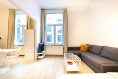 1 bedroom apartment of 38 square meters on 1th floor of Residence Hermes, located Sint Laurensstraat in the center of Brussels, close to central station, Grand Place, commercial centers and higher education colleges and universities. The apartment has a living area, fully equipped kitchen, separate sleeping area and shower room and toilet. Fully furnished. Bicycle storage on the inner courtyard. Rent per month is 800 EUR plus 100 EUR advance on costs ( water, heating, maintenance of common areas, ... ) Available - lease for minimum of 12 months. Closets, desk, table are in the apartment and chairs and sofa can be foreseen if necessary En savoir plus ?