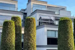 Dans le domaine classé de la Hêtraie , magnifique parc arboré, ce superbe duplex (rez-de-chaussée + 1er étage), conçu en 2002 par l’architecte Marc Corbiau , développe une surface habitable de ± 230 m² et bénéficie de terrasses totalisant ± 100 m² . L’appartement se compose d’une belle réception avec mezzanine , d’une cuisine hyper équipée , d’un bureau, de trois chambres dont une vaste suite parentale avec dressing , de deux salles de bains et d’une buanderie. De très belles prestations et finitions renforcent le caractère unique de ce bien. Un double garage en enfilade est proposé en supplément au prix de 50.000 €. PEB : D- Un bien signé Corbiau, rare et élégant, niché dans un environnement classé et verdoyant. En savoir plus ?