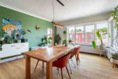 Penthouse van ca. 160m² met schitterend stads- en parkzicht in het standingvol appartementsgebouw 'Résidence Albert' uit 1955. Indeling: Men komt binnen in de brede inkomhal met ingemaakte kasten. Deze geeft o.a. toegang tot de L-vormige woon- en ontvangstvertrekken, gevormd door de eetkamer en de royale leefruimte met een prachtig uitzicht over het Provinciehuis en het Koning Albertpark. Het centrale gedeelte wordt ingenomen door de moderne, volledig uitgeruste keuken voorzien van kwalitatieve toestellen die elke hobbykok zullen bekoren. Achteraan beschikt het appartement over twee ruime slaapkamers waarvan één met terrasje. Tussen de twee slaapkamers, één van de badkamers met ligbad, toilet en een badkamermeubel met dubbele wastafel. Vooraan bevindt zich nog de 3de, ruime slaapkamer en een badkamer met inloopdouche, toilet en een badkamermeubel met enkele wastafel. Het gebouw wordt betreden via de prachtige ruime marmeren inkomhal. Het appartement op de 10de en hoogste verdieping geniet overal van dezelfde kwaliteitsvolle en verfijnde afwerking, hoge plafonds, vloeren in parket Het rond om rond groen uitzicht en de natuurlijke lichtinval in elke ruimte maken van dit appartement een echte parel. Bijzonderheden: Gunstig EPC van 233 kWh/m²/jaar; Maandelijkse kosten: €366,- [Syndicus; blokpolis; onderhoud/verbruik van de algemene delen (incl. 2 liften), provisie koud/warm water en verwarming] ; Privatieve kelderberging. Ligging: Fantastisch gelegen middenin één van de meest gegeerde residentiële wijken van de stad aan het Koning Albertpark en het Harmoniepark, vlakbij Brouwerij De Koninck, het Groen Kwartier, het Provinciehuis, verfijnde horecazaken, winkels, openbaar vervoer, vélostations, uitvalswegen én hartje stad. En savoir plus ?