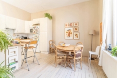 Infos et visites : contactez Brigitte ### - ### . À quelques pas seulement de la Place du Châtelain, sur la commune de Saint-Gilles, à la frontière d'Ixelles, By the Way vous présente cet appartement en triplex de +/-190m². Entièrement rénové (électricité, plomberie, chauffage, isolation), l'appartement propose des espaces lumineux au charme authentique et contemporain. Il se compose comme suit : Au 1er étage : Cuisine (semi-)ouverte équipée, vaste séjour et WC séparé. Au 2e étage : Chambre #1 (16m²) avec Salle de douche privative, chambre #2 (17m²) avec salle de bains et douche privative, WC séparé. Au 3e : Chambre #3 (19m²) avec salle de bains et douche + dressing/bureau + buanderie + local technique. Grenier aménageable au 4e étage. Actuellement loué (Bail résidentiel en cours jusqu’au 31 Août 2025), il génère 31.228,2€/an de revenus, soit un rendement brut annuel de 3.96%. Consommations individuelles. Chaudière gaz BUDERUS 2023. PEB D + ELECTRICITE CONFORME. PAS DE CHARGES. Précompte immobilier : 2.673€ dont 40% pris en charge par le restaurant situé au rez-de-chaussée. Infos et visites : Contactez Brigitte ### - ### par le commerce. Infos et visites : contactez Brigitte ### - ### . En savoir plus ?